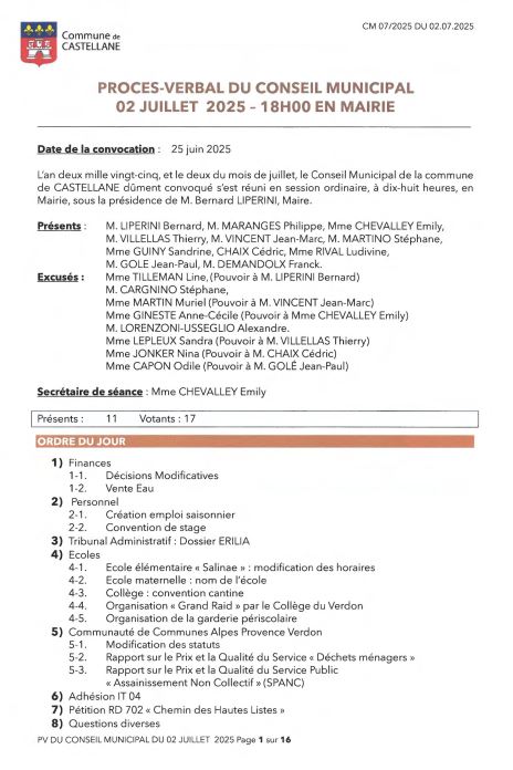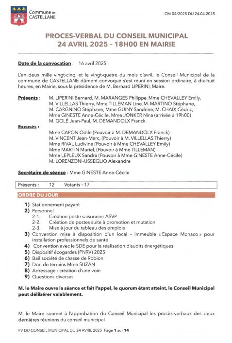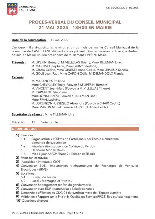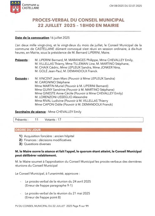 Procés verbaux DES SÉANCES DU CONSEIL MUNICIPAL 2025 :