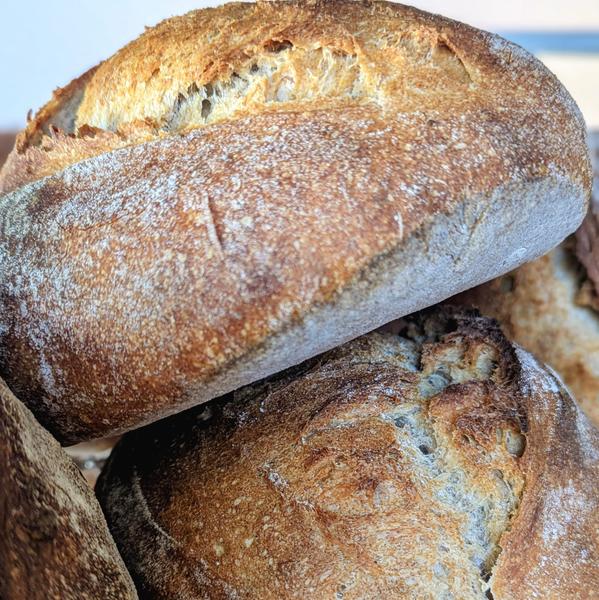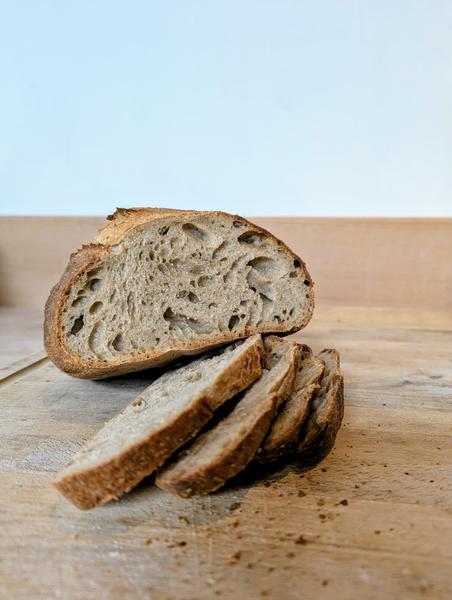 Pain au levain naturel • Farines bio et locales • Cuisson au feu de bois • Fabrication 100% maison • Matières premières issues de l'agriculture biologique • Longue conservation