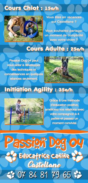 Education Canine (cours collectif ou particulier) Possible dans les campings sur réservation.