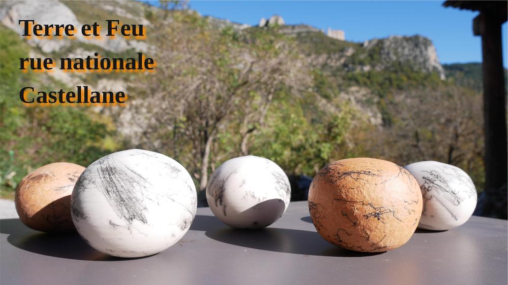 Fascinés par " l'accident " et le hasard, nous faisons aussi des pièces décoratives en raku.