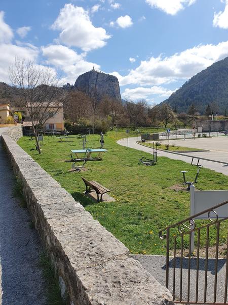 Terrain aménagé : Basket, volley, foot, tennis, skate park, ping-pong, modules de fitness, gymnase.